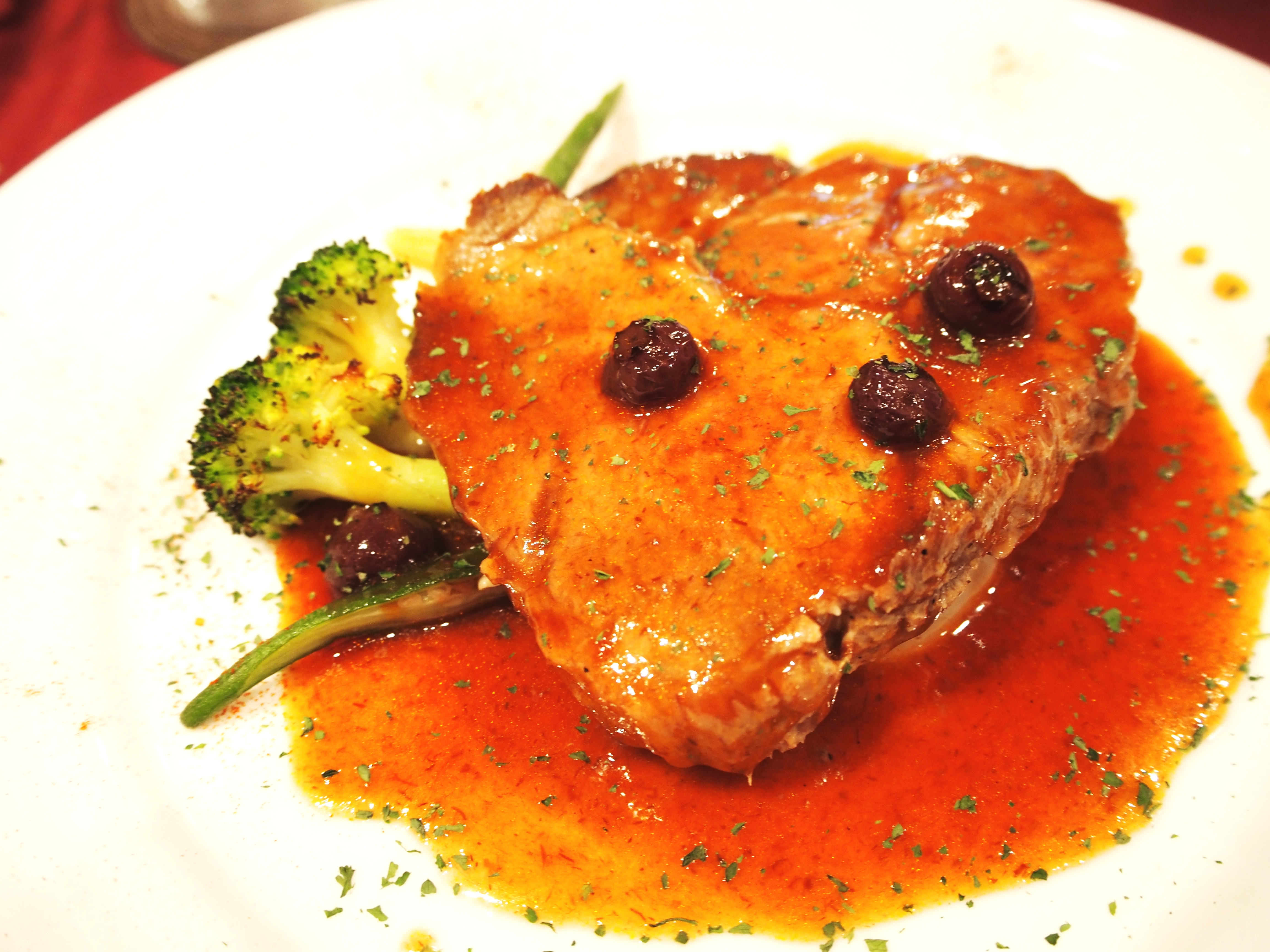 ブルーベリーのソースもほどよい甘さと酸味が豚肉に合うなぁ。